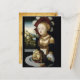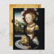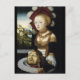 Salomé "a Filha de Herodias, vestido e joias lindos com chapéu vermelho branco e paisagem lacustre em fundo pelo pintor alemão Lucas Cranach, o velho efeito pergaminho marrom e um rubi vermelho em costas.