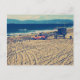 Aproveite esta fotografia vintage de uma estação salva-vidas e veículo na praia de Hermosa, Califórnia.