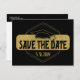 Cartão Postal Salvar a Data de Graduação em Preto Moderno Dourad