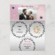 O floral de prata em relevo contém as informações que você deseja transmitir naquele momento. Um número único dourado e brilhante e uma fileira de pérolas brancas onduladas atrás da foto personalizada adicionam elegância ao design final.