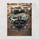 Cartão Postal Salvar a Data Madeira Rústica & Luzes de Noivado