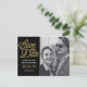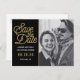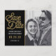 Não tradicional Guardar o postal de Casamento de Data tem um guião de ouro moderno contra um fundo preto. Sua foto em preto e branco é elogiada por este anúncio ousado.
