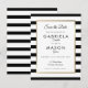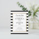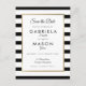 Projetado para combinar com nossa coleção de casamento de listras clássicas. Com um fundo de listras pretas e brancas clássicas, este cartão de salvar a data apresenta uma borda elegante em folha de ouro falso que emoldura os detalhes da data marcados em tipografia sofisticada. Projetado por Thisisnotme