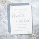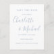 Com nomes de estilo exclusivo, este cartão de salvar a data em azul empoeirado elegante pode ser personalizado com as informações do seu dia especial de casamento em letras elegantes. Projetado por Thisisnotme©