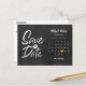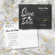 Este livro para salvar a data card apresenta um calendário e um bonito coração de amor dourado destacando sua data especial em um fundo de quadro. O inverso tem os detalhes adicionais da data, incluindo o site do casamento, com seu endereço de retorno e espaço para o endereço do destinatário.