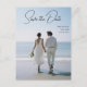 Salve a data! Moderna, escrita manual, minimalista 1 Cartão com fotos.