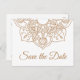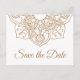 Orgulhosamente, anuncie aos amigos e à família que você e sua namorada estão envolvidos com esta linda mandala floral indiana branca e marrom Salve o cartão postal do noivado de data. A parte traseira do cartão apresenta as informações do seu casamento impressas em complemento de fontes escritas em castanho e fontes fáceis de ler. Este é um anúncio excelente para * boho, índio, casamentos modernos * negócios * angariadores de fundos e instituições de caridade * eventos futuros * banquetes. Role para baixo para ver os produtos correspondentes que você pode desfrutar.