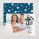 Este cartão de save the date de foto com script moderno apresenta sua foto e um save the date decorativo em script acima dos seus nomes, data e local. O verso apresenta pontos espalhados. Você pode personalizar a cor do fundo para combinar. Desenhado por Thisisnotme©