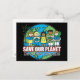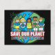 Grupo de crianças com camisas da Terra e reciclar, sapo e árvores com fundo da Terra! Salve nosso planeta, faça isso para as crianças, para conservar e reciclar, ajude os animais e ajude a salvar a terra para o futuro das nossas crianças!