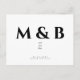 Salve o Dia de Casamento Contemporâneo Branco e Preto com Monograma. Casamento. Primeiro e Último Nome. Moderno. Simples. Cartão Postal.