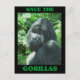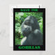 Um belo gorila adulto no seu habitat natural com as palavras Salvar os Gorilas ao seu redor.