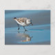 Cartão Postal Sanderling (Calidris Albe) que alimenta na praia