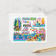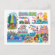 Cartão Postal Santa Cruz Illustrated Map Boardwalk Beach Surfing