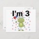 Um aniversário de 3 anos adorável em T-shirts de aniversário de 3 anos, cartas, autocolantes, ímanes, sacos de tote e mais com um sapo verde com balões de aniversário e texto que diz "Eu tenho 3".