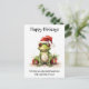 Cartão Postal Sapo com o Papai Noel embrulhando presentes Felize