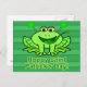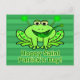 Um sapo verde giro para o Dia de São Patrício. Esta design engraçada de Paddy apresenta um sapo com antenas de shamrock e shamrocks em sua perna, e também está pegando um trevo em sua longa língua verde. O texto verde diz, "Dia de São Patrício Hoppy." Este é um design adorável para qualquer um que gosta de animais / trocadilhos de animais e que quer enviar um cartão-postal verde de sorte para o Dia de São Patty.