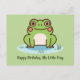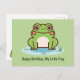 Um cartão de aniversário verde com uma ilustração de um sapo fofo em seu lago e texto personalizável abaixo! Pode ser perfeito para enviar a uma criança ou amigo que ama animais Kawaii e natureza!