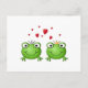 Cartão Postal Sapo Príncipe e Sapo Princesa, com corações.
