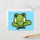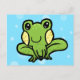 apresentando uma ilustração digital adorável de um sapo de desenho verde sorridente com bochechas amarelas cobertas de nódulos.