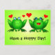 Tenham um dia feliz! Sapos verdes com corações vermelhos, fofos, engraçados e expressivos. Envie este cartão-postal alegre a alguém especial, ou coloque-o na sua parede para vos trazer bênçãos de amor e esperança todos os dias.