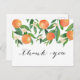 As laranjas suculentas e a caligrafia moderna decoram este design postal que seria perfeito para cartões de agradecimento econômicos para um bebê ou chá de panela. Você pode excluir as marcas do cartão postal no verso clicando no botão azul "personalizar" e depois na ferramenta design, clicando em "frente: texto e imagens", que mostrará a opção de editar a parte traseira do cartão também.