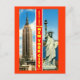 A reprodução de um cartão de posto vintage mostra o Empire State Building e a Estátua da Liberdade. Este item é de qualidade de arquivamento, alta resolução, foi retocado, recolorado em áreas, cortado e aprimorado. Isso garante que seu item será impressão com a maior qualidade possível. Aviso de Direitos: Não existem restrições conhecidas à publicação.