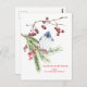 NewParkLane - Cartão-postal Elegante de Natal, com saudações personalizadas de época e verde tradicional de Natal com bagas vermelhas em aquarela, com um pássaro azul giro (teta cretida). Verifique se há itens correspondentes nesta coleção.