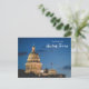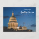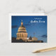 Saudações de Austin, Texas com cartão postal com o prédio da capital e a bandeira.