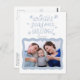 Envie saudações de férias para familiares e amigos com este cartão postal de Natal/feriado com o texto 'Saudações da Temporada de Inverno' em fonte de caligrafia fofa. Flocos de neve azuis e uma adorável moldura de neve azul bebê adornam o cartão postal. Uma maneira encantadora de saudar familiares e amigos. Personalize adicionando sua foto e textos favoritos.