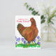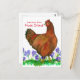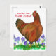 Um cartão postal "Saudações da Ilha Rhode" decorado com um frango Red hen Rhode Island com violetas roxas florescentes ilustradas com tinta e aquarela. Inspirado pelo pássaro e flor estadual da Ilha Rhode. Você pode editar ou remover o texto para ajustado das suas necessidades.