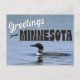 Cartão Postal Saudações do Minnesota com o Common Loon