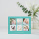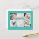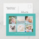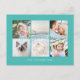Cartões-postais Universais com 6 fotos da família personalizadas em azul turquesa profissional com uma colagem de fotos elegante com 6 imagens personalizadas, sua mensagem de cumprimentos em fonte manuscrita elegante, seu nome, data, ano, mensagem no verso em uma fonte sans serif moderna e simples.