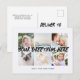 Cartões-postais com uma colagem de fotos elegante com 6 imagens personalizadas, sua mensagem de cumprimentos em fonte manuscrita elegante, seu nome, data, ano, mensagem no verso em uma fonte sans serif moderna e simples.