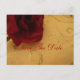 Bela rosa vermelha em um fundo com redemoinho dourado, design tem "Save The Date" em letra cursiva vermelha. O design pode ser personalizado.