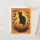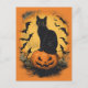Cartão Postal Schwarze Katze auf Halloween-Kürbis