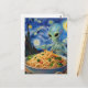 Cartão Postal Scifi Blue Alien Eating Noodles Veggies Van Gogh