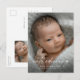 Script Apresentando Foto do Bebê Anúncio de Nascimento e cartão de agradecimento. A parte traseira inclui uma segunda foto e mensagem de agradecimento que você pode personalizar ou remover se preferir escrever à mão seu agradecimento. Clique no botão personalizar/editar para personalizar este design.