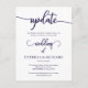 Cartão-postal Marinho Azul de Script de Atualização de Data de Casamento Adiado