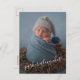 Anúncios de nascimento elegantemente doces apresentam agradecimento e sua foto favorita de recém-nascido na frente e sua mensagem, nome do bebê, estatísticas de nascimento e seus nomes em letras elegantes no verso para enviar como cartão postal!