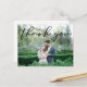 Simplesmente chique e sofisticado, nossa coleção de casamento de inverno minimalista apresenta tipografia cursiva elegante e uma fotografia completa do seu evento moderno. Agradeça aos seus convidados com um adorável cartão postal de agradecimento de casamento com sobreposição de script preto simples sobre a foto romântica de recém-casados.