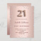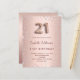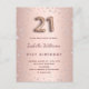Um convite moderno, na moda e glamouroso para um aniversário de 21 anos. Um fundo metálico rosa dourado falso com aspecto em forma de diamantes cor-de-rosa. O nome é escrito com um moderno e escuro, rosa dourado, escrito com letra de estilo manuscrito. Personalize e adicione os detalhes da sua festa. O número 21 é escrito com uma fonte de estilo balão, script. Fundo: rosa dourado, design postal. Dica: Se você não quiser que pareça um cartão postal, clique em personalizar, vá para o verso e remova o divisor e o carimbo de posto.