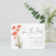Script De Código QR Do Boho Red Wildflower Salva A Data. Um cartão postal conveniente para pedir aos seus convidados que guardem a sua data. Adicione seu código QR ao seu site de casamento ou simplesmente exclua-o se não for necessário. Um design floral minimalista com Salvar a Data em um script moderno.O resto do texto que você pode personalizar facilmente. As cores do texto e do plano de fundo podem ser alteradas se você desejar por meio da opção personalizar mais.