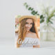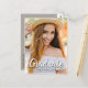 Um cartão-postal de lançamento personalizado único para a graduação de fotos, com design elementos elegantes de script de pincel com texto moderno. A foto dos formandos destaca a frente do cartão, enquanto a parte traseira do cartão oferece espaços de texto personalizados para informações sobre a formatura e a viagem futura. Você pode personalizar facilmente as cores primária e de texto na parte traseira da placa para atender às suas necessidades (verifique se a cor de fundo é clara o suficiente para gravar). Para ver mais itens como este, visite minha loja aqui em "www.Zazzle.com/LakeViewCardCo". Obrigados