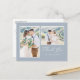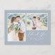 Envie obrigados para a família e amigos por fazerem parte do seu dia especial com este obrigado de colagem de fotos personalizável que você faz o cartão-postal. Apresenta uma escrita simples e uma tipografia num fundo azul empoeirado. Personalize-o adicionando seus próprios detalhes e apresentando suas fotos de casamento favoritas.