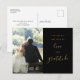 Cartão Postal Script Foto Preto e Dourado Casamento Obrigado
