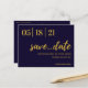 Cartão Postal script moderno de marinho e ouro salvar a data