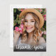 Diga obrigado com este cartão-postal com sua foto na frente junto com o obrigado que você tem em letras brancas chic. O seu agradecimento personalizado anotado no verso ou, se preferir escrever manualmente a nota, basta apagar o texto para criar espaço para a mensagem. Mais designs na nossa loja.