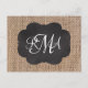 Cartão Postal Script Monograma De Olhar Triplo De Chalkboard Bur