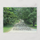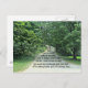 Caminho arborizado com palavras de fé e conforto: "Se Deus andasse conosco e falasse conosco hoje, o que faríamos - o que diríamos? Viva cada dia como se Deus estivesse aqui - Ele está caminhando ao seu lado, Ele está sempre perto."