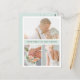O obrigado de fotos elegante e moderno de casamento que você faz com cartões postais apresenta três fotos favoritas e uma faixa central em verde-menta de seaglass pálido, com sua saudação e/ou nomes personalizados. Adicione uma mensagem pré-impressa personalizada de obrigados ao verso ou exclua o texto de amostra se usar uma mensagem manuscrita.